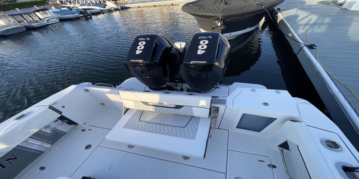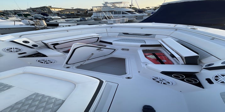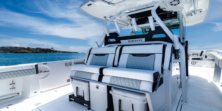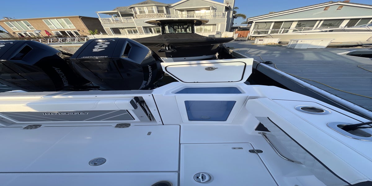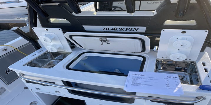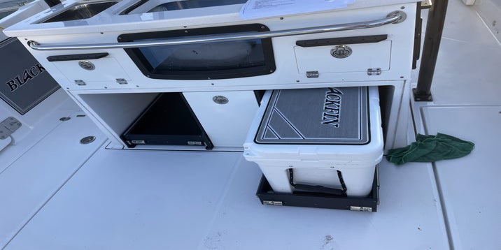 · Leaning Post, Fiberglass w/ Pull- Out/Removable Yeti (45 Qt.) Coolers (2), SS Sink (2) w/Pull-Out Sprayer, Storage Drawers (2) & Slide Out w/Tackle Utility Boxes (4)